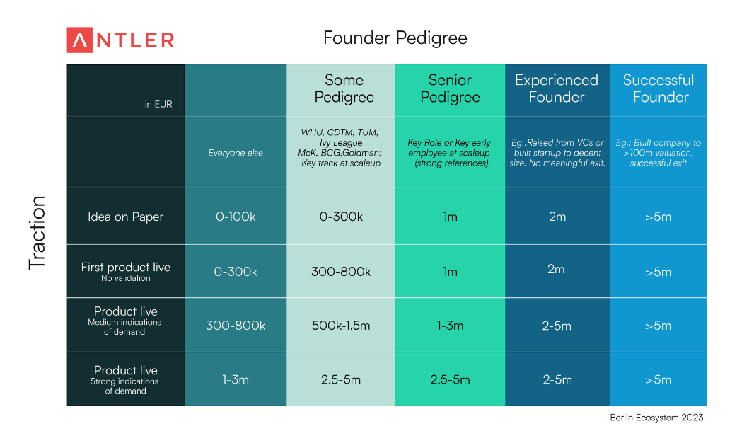 Founder Ability to Raise Cheat Sheet: I don’t 100% agree with all these numbers (looks like its tailored towards Berlin), but this is a useful framework on thinking through how much to raise based on prior founder accomplishments and company traction. h/t Rahat Ahmed for sharing! (Note: all in Euros).